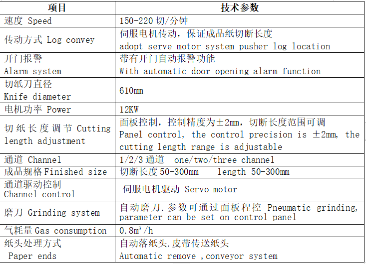 1.全自动切纸机,可搭配复卷机、抽纸机使用; 2.采用PLC控制,伺服电机驱动,切纸精确; 3.自动分离纸头纸尾功能; 4.双通道设备,可同时切不同规格产品。